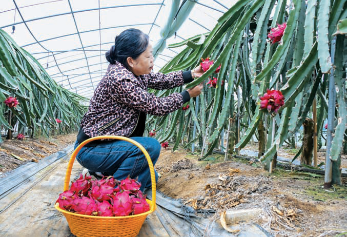 除了品種本身的優(yōu)勢,今年火龍果品質(zhì)再上新臺階,也離不開縣農(nóng)業(yè)農(nóng)村局的科技助力。“多虧農(nóng)技專家的上門指導(dǎo),我們升級了一系列智能種植設(shè)施,管護效率和果實品質(zhì)明顯提升。”洪偉明指著大棚內(nèi)的智能設(shè)備介紹,如今19個大棚已全面配備智能噴霧系統(tǒng)、水肥一體化系統(tǒng)和智能控制器系統(tǒng),實現(xiàn)了種植管護的智能化升級。