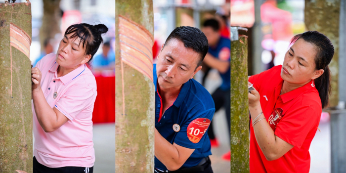 本次橡膠割膠工技能競賽自啟動以來,海南、云南、廣東等橡膠產(chǎn)區(qū)主管部門高度重視、積極籌備,共吸引6萬余名割膠工參加各層級勞動競賽、選拔賽,最終三個植膠省的6支參賽代表隊、70名選手入圍決賽。競賽內(nèi)容按照《橡膠割膠工國家職業(yè)技能標(biāo)準(zhǔn)》的高級工(國家職業(yè)資格三級)以上知識和技能要求設(shè)置,包括理論知識考試和樹樁割膠現(xiàn)場技能操作考核兩部分,按2:8比例計算綜合得分。理論知識考試主要考核橡膠割膠工的專業(yè)基礎(chǔ)知識、職業(yè)道德、安全知識及相關(guān)法律法規(guī)等,技能操作主要考核參賽選手陽刀順割、倒割和陰刀三種技法,從割面、割線、深度、耗皮、下刀、收刀、切片均勻度和數(shù)量等方面進(jìn)行評分。