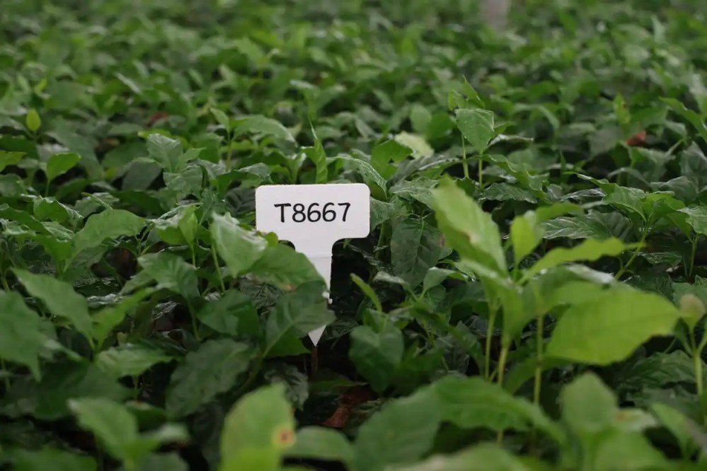 走進(jìn)咖啡育苗基地,智能溫室大棚內(nèi)一片生機(jī)盎然。正是育苗關(guān)鍵期,“瑰夏”“T8667”“薩奇姆”等多個(gè)品種的20萬余株咖啡苗整齊排列,在標(biāo)準(zhǔn)化苗床上茁壯成長。