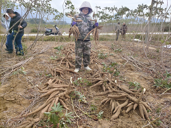 模式創(chuàng)新,凝聚發(fā)展之力。兩江鎮(zhèn)采用“專(zhuān)家+農(nóng)戶”合作模式,引進(jìn)國(guó)家木薯產(chǎn)業(yè)體系專(zhuān)家與農(nóng)戶緊密合作,農(nóng)戶提供土地,專(zhuān)家不定期到場(chǎng)提供技術(shù)支持,共同試驗(yàn)種植高產(chǎn)新品種。今年,漢安村合作片區(qū)合作模式下的木薯種植基地面積達(dá)到了500畝,帶動(dòng)周邊超100戶農(nóng)戶參與,預(yù)計(jì)2025年種植面積將達(dá)3000畝以上。合作模式不僅突破了農(nóng)戶種植技術(shù)的難關(guān),也搭建起銷(xiāo)售的橋梁。新模式下,用新品種、新技術(shù)種植的木薯一上市便被搶購(gòu)一空,收購(gòu)價(jià)格比傳統(tǒng)種植模式下的木薯高出30%,帶動(dòng)廣大農(nóng)戶增收致富。