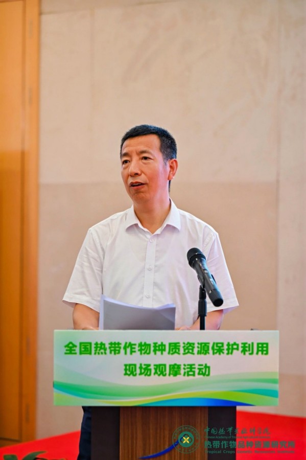 農(nóng)業(yè)農(nóng)村部農(nóng)墾局副局長、一級巡視員程景民在講話中總結(jié)了近年來熱作種質(zhì)資源保護利用工作取得的成效。熱作種質(zhì)資源收集保存總量持續(xù)提升,形成了以資源圃(庫)為核心、復份圃為補充的熱作種質(zhì)資源集中保存體系,收集保存熱作種質(zhì)資源超9萬份,保存數(shù)量躋身世界前10位。熱作種質(zhì)資源鑒定利用體系日臻完善,制定了一系列種質(zhì)資源描述規(guī)范、數(shù)據(jù)規(guī)范和質(zhì)量控制規(guī)范,完成4.7萬份次以上種質(zhì)資源鑒定評價工作,初步建立了表型與基因型相結(jié)合的鑒定評價技術(shù)體系。熱作新品種選育及推廣成果顯著,截至2023年底,國家和省級累計審定認定超200個熱作品種,登記品種數(shù)40余個,橡膠、香蕉等主要熱作良種覆蓋率超過90%。熱作種質(zhì)共享利用和對外交流合作不斷深化,累計從100多個國家和地區(qū)引進特色熱帶水果、藥用植物、香飲料等種質(zhì)資源,并積極推動我國自主選育品種“走出去”。