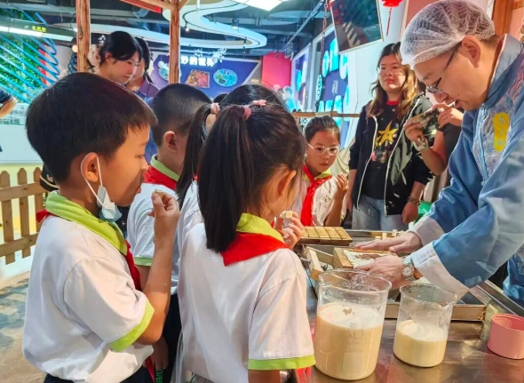 在王致和科普館,學生們通過沉浸式體驗腐乳制作的全過程,深入了解傳統(tǒng)腐乳釀造的非遺技藝。通過開展科普研學活動,讓傳統(tǒng)工藝“傳”在孩子的手心里、留在孩子的記憶中。始創(chuàng)于清康熙八年(1669年)的王致和,距今已有350余年歷史。“我們的每一塊腐乳,都要經(jīng)35道工序、歷百天醞釀變化才能來到消費者手里。我們的研發(fā)和創(chuàng)新,都是在嚴守傳統(tǒng)工藝和流程的前提下進行的優(yōu)化和提升?!蓖踔潞凸靖笨偨?jīng)理楊凱介紹,作為國內(nèi)最大的腐乳生產(chǎn)企業(yè),王致和將300余年的腐乳釀造技藝與現(xiàn)代科技深度交融,通過現(xiàn)代工藝使得每一道加工工序都擺脫了“少量、差不多”的經(jīng)驗性操作模式,不再單憑感官判定,工藝參數(shù)均得到了量化和標準化,有效地保證了產(chǎn)品品質(zhì)的穩(wěn)定性。