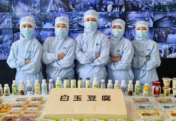 在北京,最知名的豆腐品牌當屬“白玉”。北京白玉食品有限公司每天可生產(chǎn)近30萬盒的盒裝豆腐,北京市場商超系統(tǒng)覆蓋率達90%,并實現(xiàn)對北京各大農(nóng)貿(mào)市場的全覆蓋。從泡豆、磨漿、煮漿、點腦、壓制到成型,21道自動化工序都遵循傳統(tǒng)技藝,展現(xiàn)了“白玉”的初心與追求。